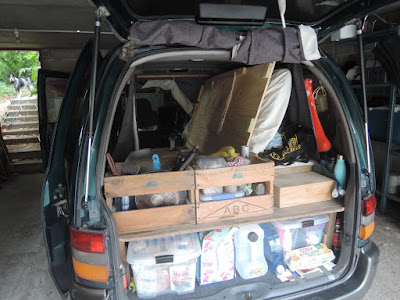 Ha quedat genial, sobretot tenint en compte les limitades dimensions de la furgo. L'hi vam comprar a un gavatxo que segons ell tenia pressa per tornar a França perquè havia deixat prenyada la seva novia i ella ja havia tocat el dos ràpid per anar a avortar mentre ell intentava vendre el que havia seigut la seva casa amb rodes durant un any. Era necessari explicar-nos tot això? La furgo en sí ja ens agradava: bon preu (1.600€ després del regateig), amb TOT el material de cuina i càmping, canya de pescar, equip de snorkel, neoprè, kayak inflable... ara faltava espai pel nostre material! Vam començar per regalar la canya a l'Hugo que es veu que li mola pescar. A nosaltres només ens falta aprendre a pescar... tot i que potser sería una bona alternativa a tot.